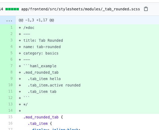 また、「CSS上にコメント形式で記載する」ことで、「そのCSSがドキュメント化される」のと「ガイドに掲載されているのか」がCSSを見るだけでわかるようになります。